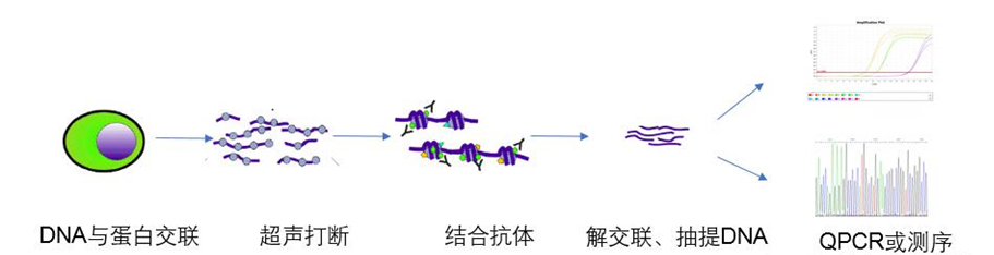 ●實(shí)驗步驟:定量檢測目標(biāo)DNA片段的富集程度。高通量測序分析全基因組范圍內(nèi)的蛋白質(zhì)結(jié)合位點(diǎn)。